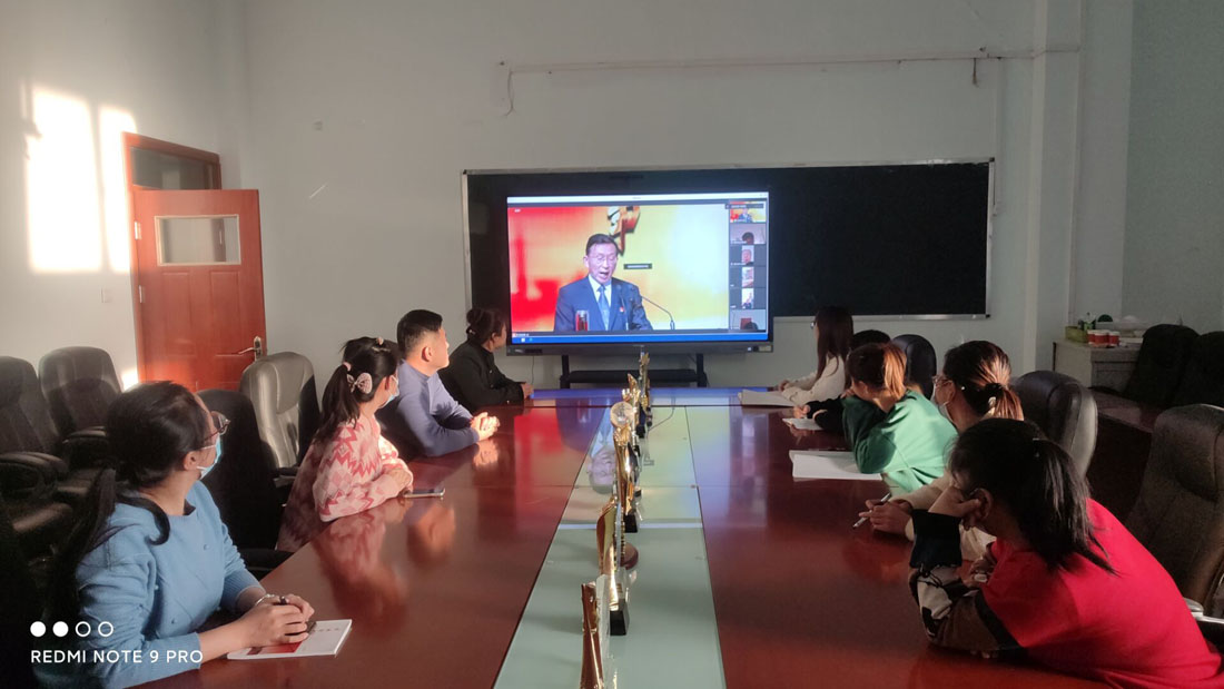 (医学院在校教职工在行知楼704会议室集中参加线上宣讲会)