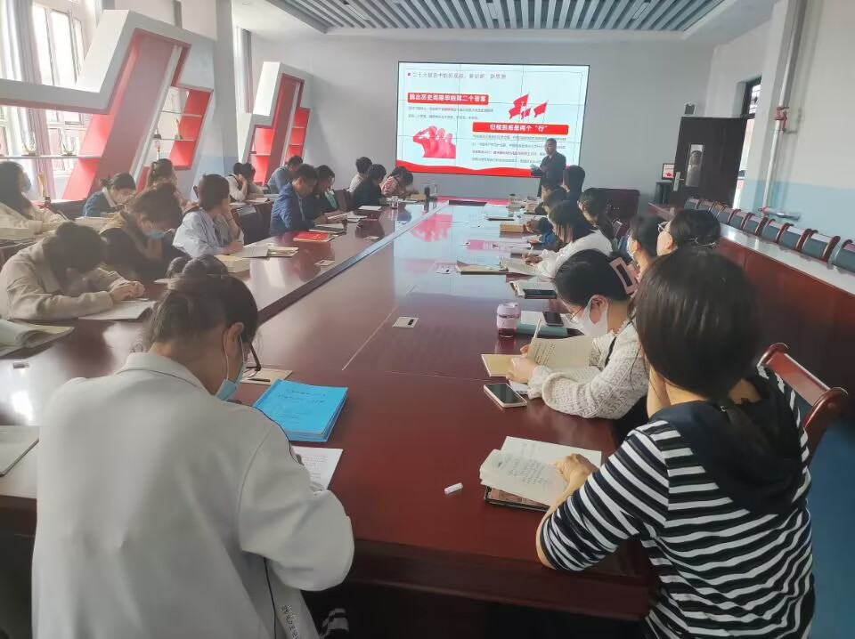 医学院副院长于荣哉系统介绍了党的二十大提出的一系列新观点、新论断、新思想,带领大家从大会主题中深刻理解党和国家事业发展的总纲,从党的中心任务中深刻把握新时代中国共产党人强烈的历史自觉和责任担当,从中国式现代化中深刻体会中国共产党人的历史自信,从三个务必、三件大事、第二个答案等系列观点中深刻感悟党的二十大报告这一马克思主义纲领性文献的丰富内涵。