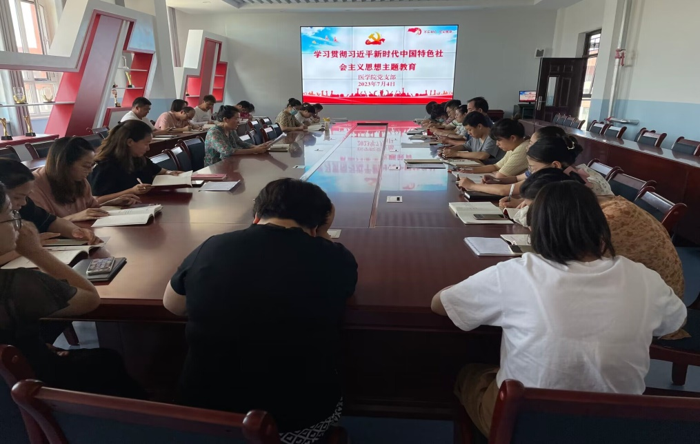 7月4日下午,医学院在弘远楼501开展了学习贯彻习近平新时代中国特色社会主义思想主题教育理论学习,会议由医学院党支部书记、院长范玉敏主持,全体教职工参加。