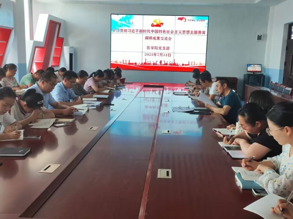 为进一步贯彻落实学习贯彻习近平新时代中国特色社会主义思想主题教育总要求,按照学校党委安排,7月14日下午,医学院在弘远楼A501会议室召开主题教育调研成果交流会。学校主题教育督导组杜忠佩同志到会指导,医学院党支部书记、院长范玉敏主持会议。