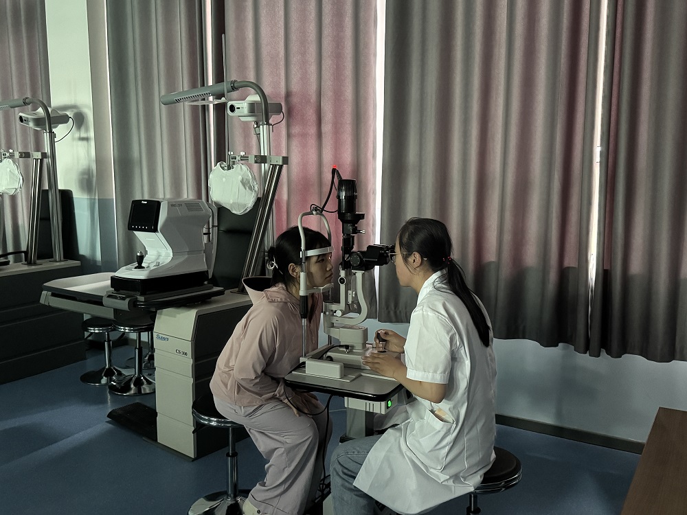 活动现场,经过系统培训的学生们在专业教师指导下,利用综合验光仪、裂隙灯等专业设备,为前往参加活动的师生提供视力检测、屈光状态评估、常见眼病初步筛查等服务。同时,结合理论知识与临床经验,针对用眼疲劳、近视防控、眼病预防等问题,为他们提供个性化护眼方案,并通过案例讲解、互动问答等形式,普及科学用眼知识,纠正日常用眼误区。