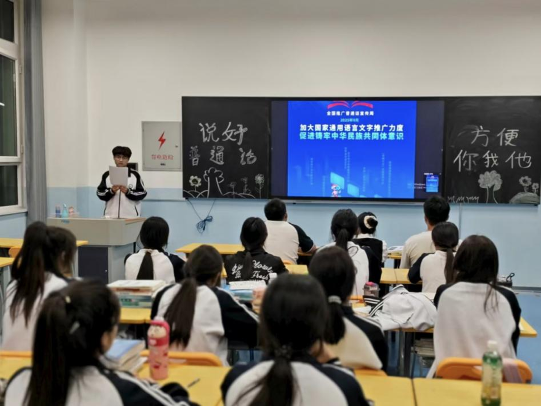 各班利用晚自习组织开展了推广普通话主题班会活动,同学们通过参加制作手抄报、诵读小竞赛、绘制特色海报等丰富有趣的主题活动,感受中国语言文字的魅力。